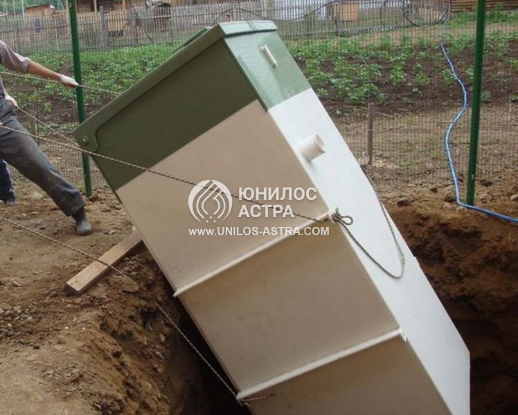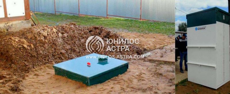 • При опускании Юнилос Астра 5ПР в подготовленный котлован между стенками станции и котлована образуются зазоры, требующие засыпки песком при последовательном наполнении емкости водой.