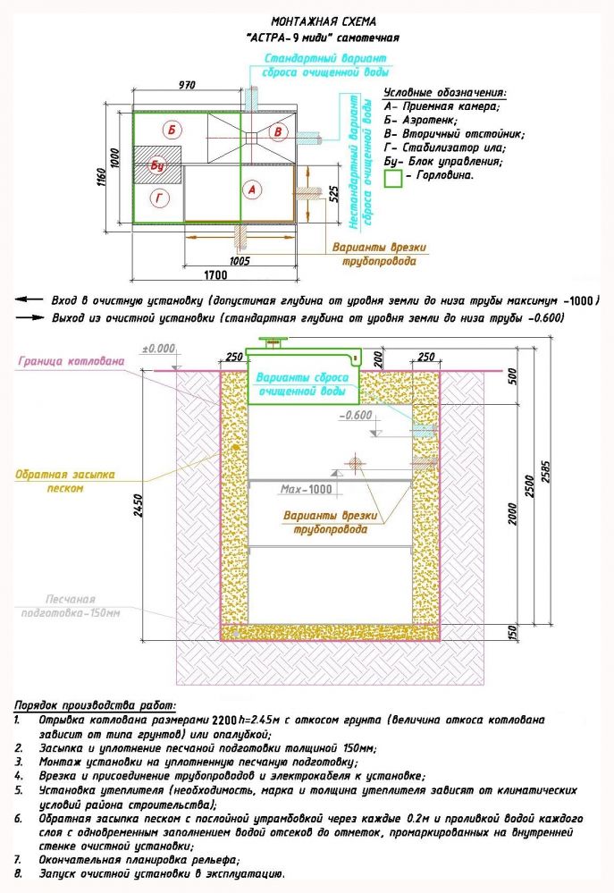 Насос для откачки: нет (самотечный сброс)